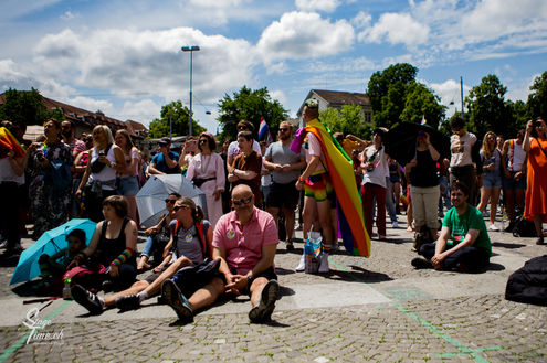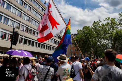 Erstmals zog man vom Kasernen Areal auf den Sechseläutenplatz direkt vor das Opernhaus, welches schon eine Woche zuvor in den Regenbogenfarben beleuchtet wurde. Die Stadt Zürich putze sich dieses Jahr nicht nur mit der Regenbogenfahne beflaggt heraus. Ebenfalls wurden Fussgängerstreifen und die Strassenschilder LGBIQ+ Community gerecht verschönert. Man sollte sehen, dass die Strassen allen Menschen gehören.