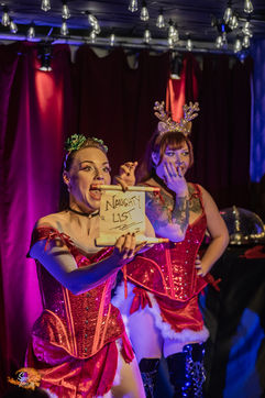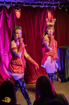 Nun ich fuhr wie immer mit grosser Vorfreude in die Bar in Kleinbasel. Zuerst musste ich mich durch einen kleinen Weihnachtsmarkt kämpfen. Gar nicht so einfach, wenn alle das Spiel «wir stehen einfach im Weg herum»spielen. Knapp ohne Tobsuchtsanfall habe ich dann mein Ziel erreicht. Kaum angekommen wurde ich schon von der ersten Performerin, Ruby Schatzi begrüsst. Die Künstlerin aus Strassburg ist wie ich schon ein Stammgast im Cozy Cabaret. Immer mit tollen Kostümen und spannenden Acts. Danach fiel mir schon die Chefin um den Hals. Das ist für mich immer der Moment wo ich angekommen bin und all der ärger vor der Türe vergessen ist. Egal ob Zugverspätung oder Weihnachtsmarkt, ab dem Moment zählt nur noch die Show.