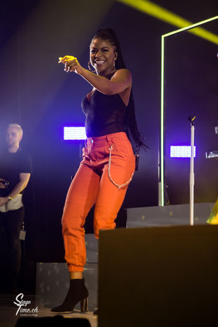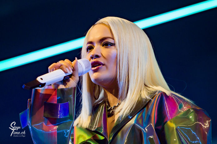 Rita Ora nutzte ihre Bühne gut aus, ob auf einer der drei Stufen oder am Bühnenrand, sie war sehr präsent. Der weisse Plattenboden bot sich für etliche Tanzeinlagen an.